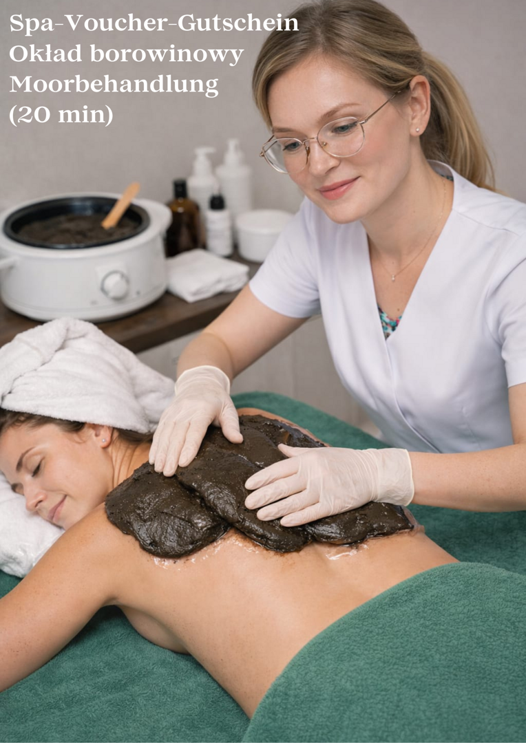 Im Preis Ihres Aufenthalts ist 1 Behandlun pro Person/Aufenthalt enthalten: Moorbehandlung zum Entspannung – 20 Min. Heilmoor ist ein natürlicher Torf mit einer reichhaltigen Zusammensetzung, der in Kolberg abgebaut wirg. Zu den Wirkstoffen gehören unter anderem Huminsäuren, Enzyme und Phytohormone. Es beschleunigt die Geweberegeneration und verbessert die Durchblutung. Es wirkt schmerzlindernd, entzündungshemmend, wärmend, nährend und entspannend.